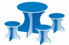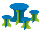 Набор состоит из четырех предметов: стол и три табурета. Поверхности стола и табуретов округлые. Основание стола и табуретов крестообразное. Используемые материалы: ЛДСП толщиной 16 мм.Кромка ПВХ толщиной 2 мм. Стол: диаметр 580 мм, высота 520 мм - 1 шт. Табурет: диаметр 300 мм, высота 300 мм - 3 шт.