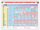 Справочно-информационный стенд предназначен для наглядной работы с таблицей "Растворимость кислот, оснований и солей в воде" в образовательных учреждениях на занятиях по химии, физике и другим предметам, при изучении которых необходима информация о свойствах различных химических элементов.