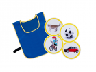 Жилеты снабжены текстильными застежками по бокам для регулирования по талии, а также спереди и сзади для крепления тематических картинок.