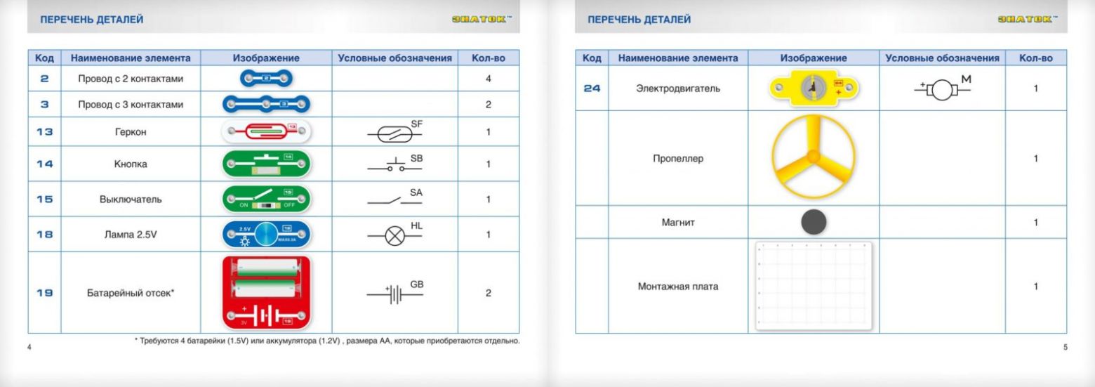 Для того чтобы ребёнок научился не просто собирать электрические схемы, а задумывался над собранным проектом, мы поместили комментарии с пояснениями и задания на быстрое усвоение важных знаний по физике. Мы рекомендуем данный набор для детей 6-12 лет, но фактически конструктор рассчитан практически на любой возраст, мы часто видим, как родители с удовольствием играют вместе с детьми. Простота соединений и ясность описания позволяет собирать сложные схемы даже ребенку пяти лет. 100% положительным результатом можно удивить родителей, друзей, учителей.