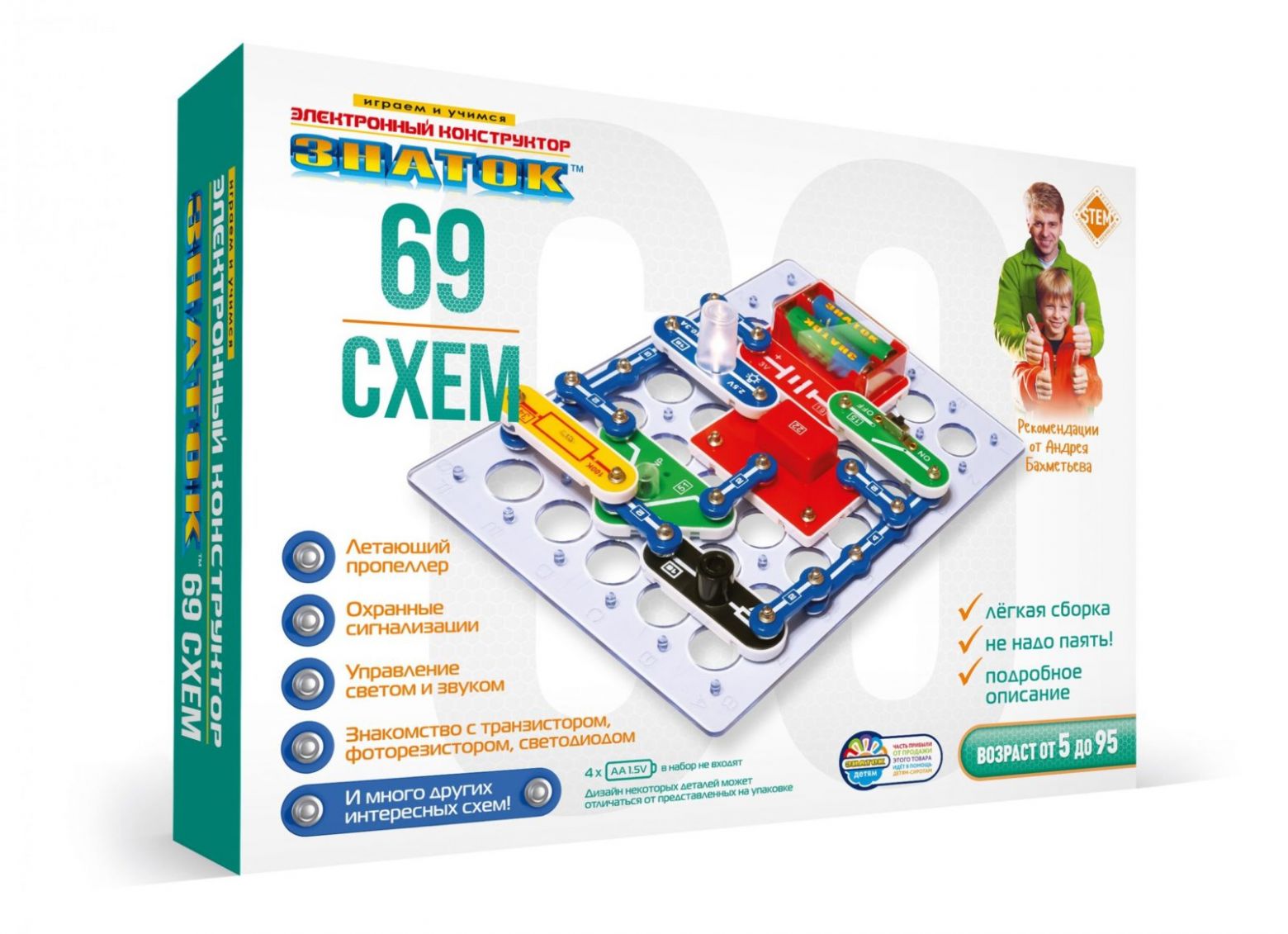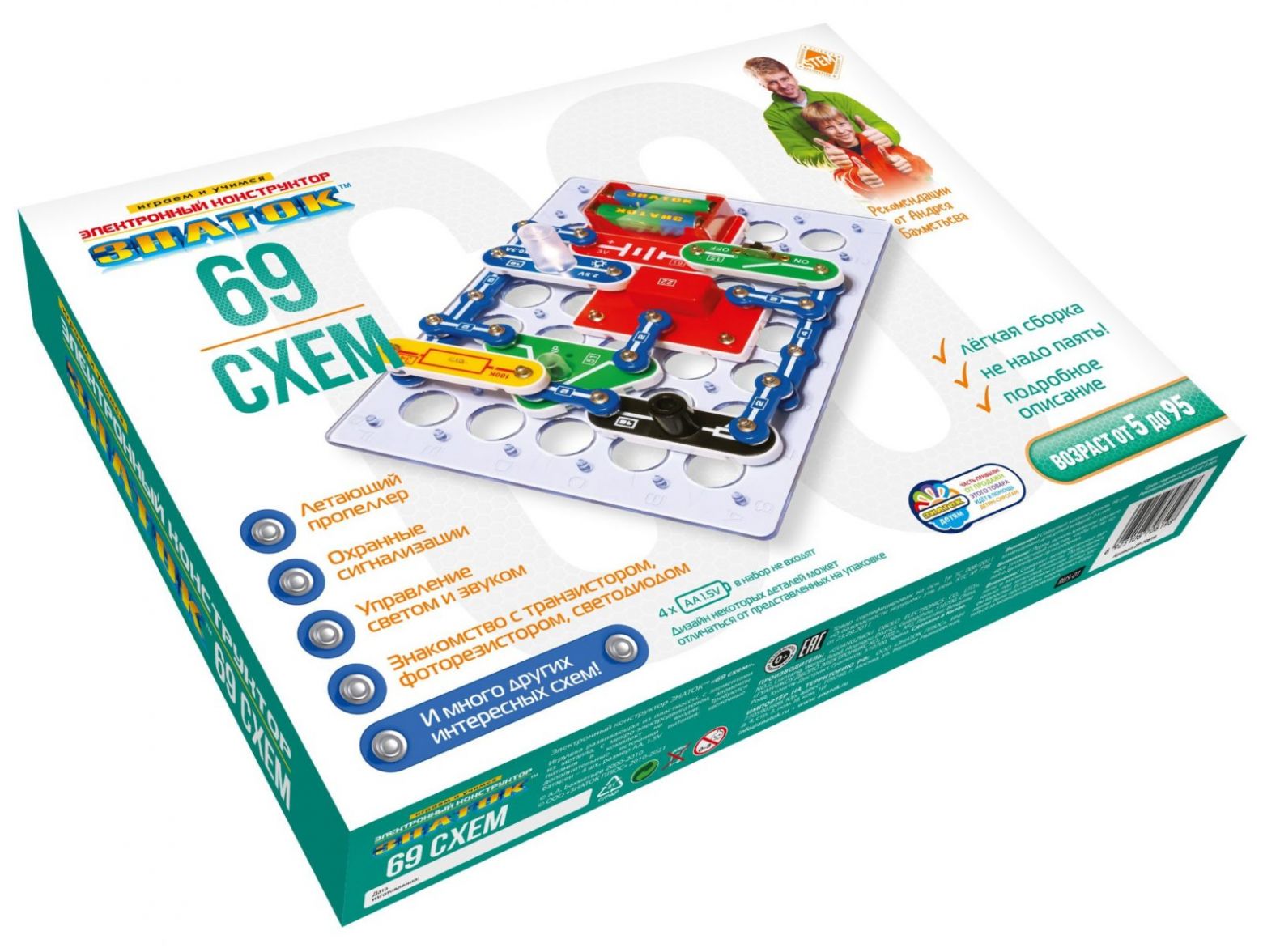 Электронный конструктор начального уровня, позволяющий ребёнку познакомиться с удивительным миром электроники. Даже без помощи взрослых, используя только очень понятное цветное руководство, всего за несколько минут, он или она смогут собрать одну из 69 схем, на которые родители 10 лет назад тратили целые недели. Это отличное подспорье в изучении школьной программы по физике. Многие схемы имеют практическое применение. 100% положительным результатом можно удивить родителей, друзей, учителей.