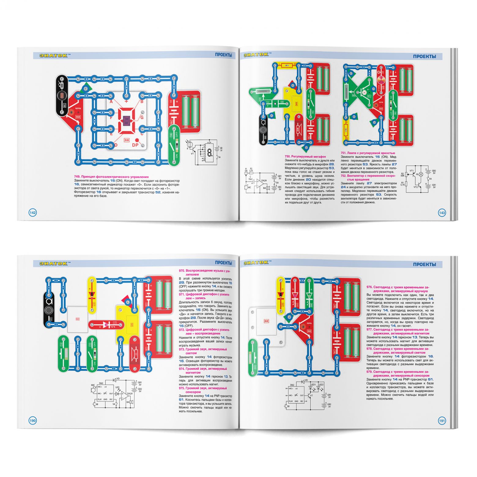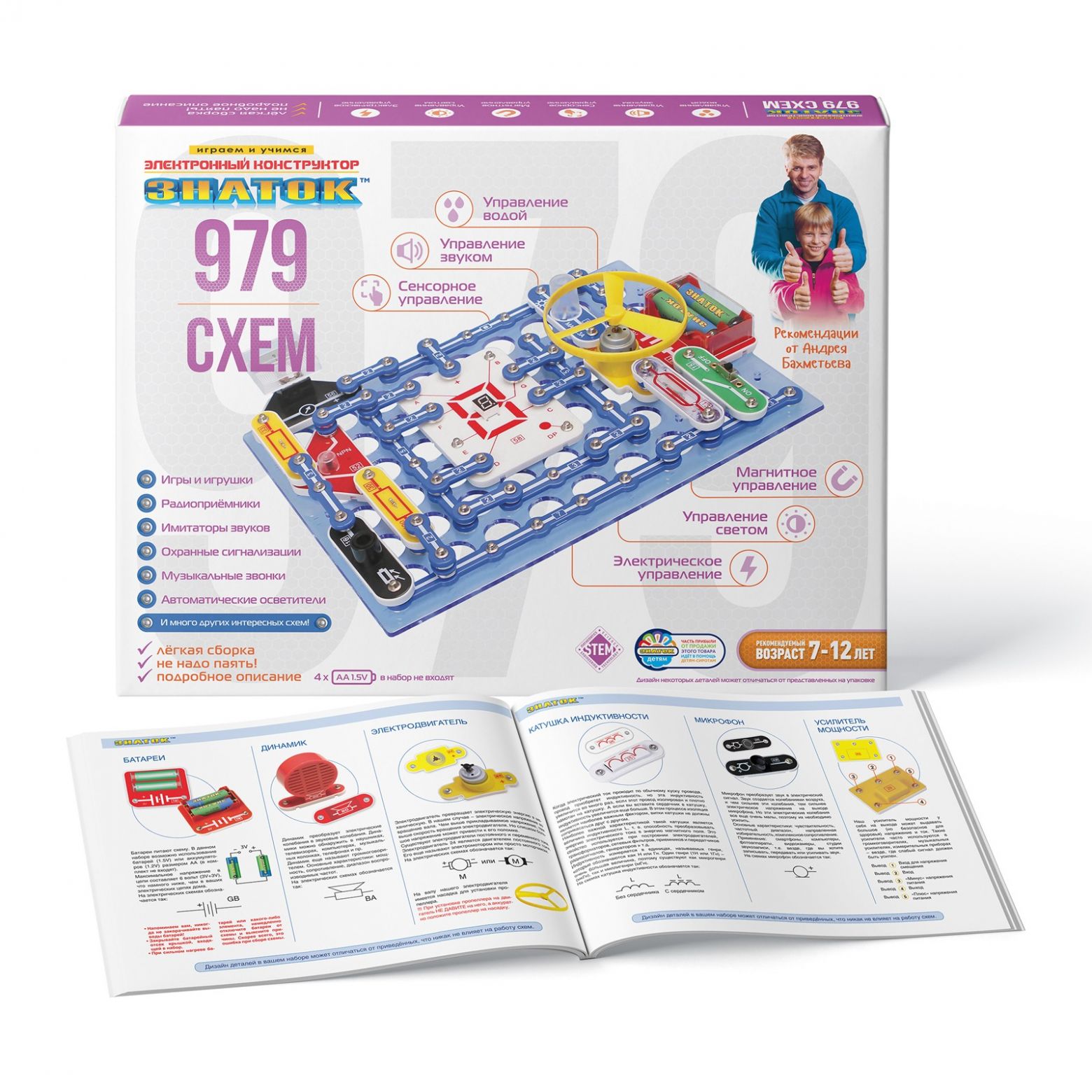 Электронный конструктор «979 схем» среднего по сложности уровня, познакомит с удивительным миром электроники. Даже без помощи взрослых, используя очень понятное цветное руководство, всего за несколько минут, он или она смогут собрать и испытать схему с практически 100% положительным результатом и удивить родителей, друзей, учителей!