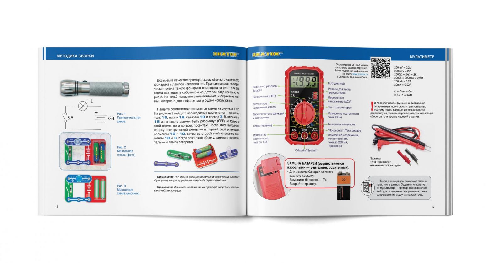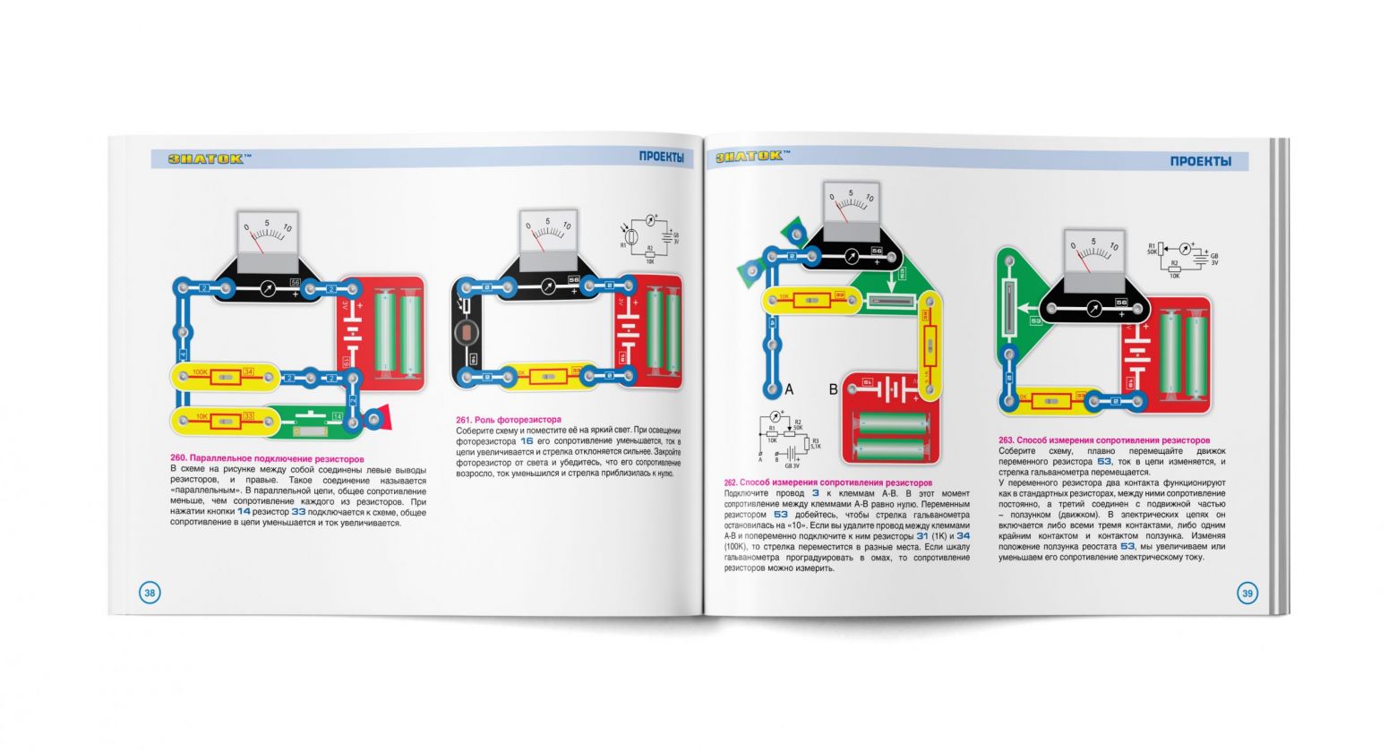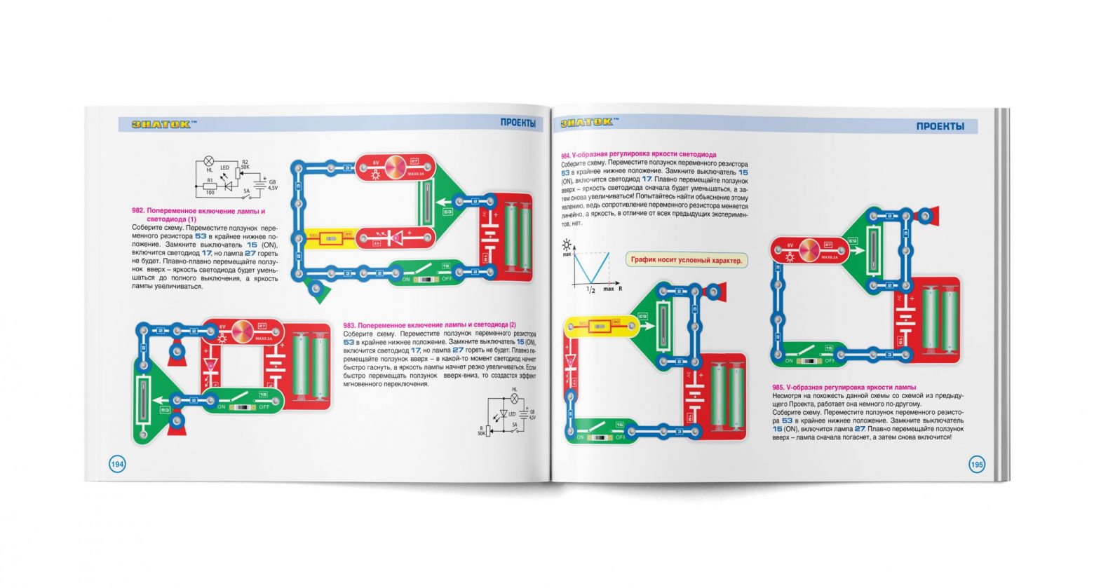 Электронный конструктор среднего уровня, позволяющий ребёнку начать интенсивное обучение электронике. По сравнению с наборами «201схема» и «403 схемы» здесь не только добавлены новые элементы, которые позволяют собрать более 1000 схем, но и цифровой мультиметр, который выводит изучение электроники на совершенно другой уровень. К тому же, этот мультиметр, после изучения его работы, пригодится и в быту – измерение напряжений и токов, проверка проводки и аккумуляторов, и многое другое. В наборе имеются интереснейшие книги, в которых приводится описание более 1000 схем.
