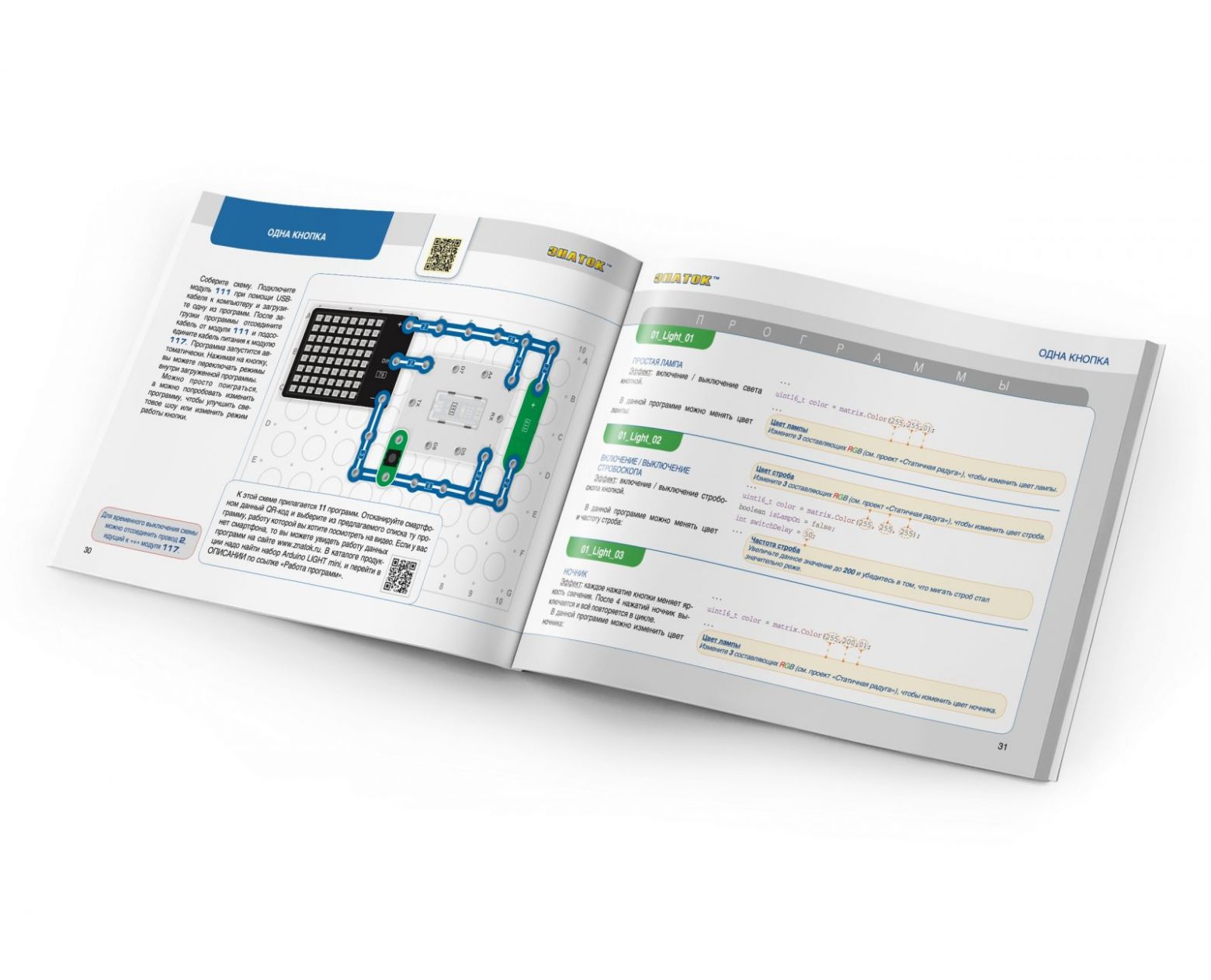 Вы можете начать с предложенных в красочной инструкции проектов, cкачав 30 готовых программ и архив с рабочими файлами.