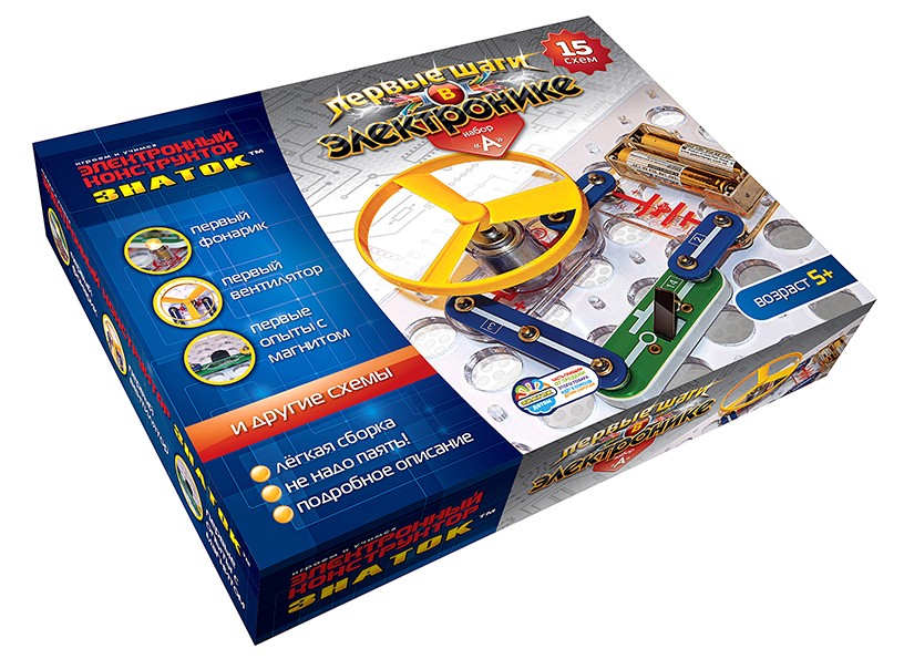 Электронный конструктор ЗНАТОК "Первые шаги в электронике." Набор "А" (15схем)