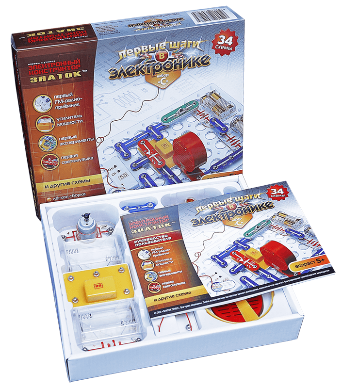 Электронный конструктор ЗНАТОК "Первые шаги в электронике." Набор "C" (34схемы)