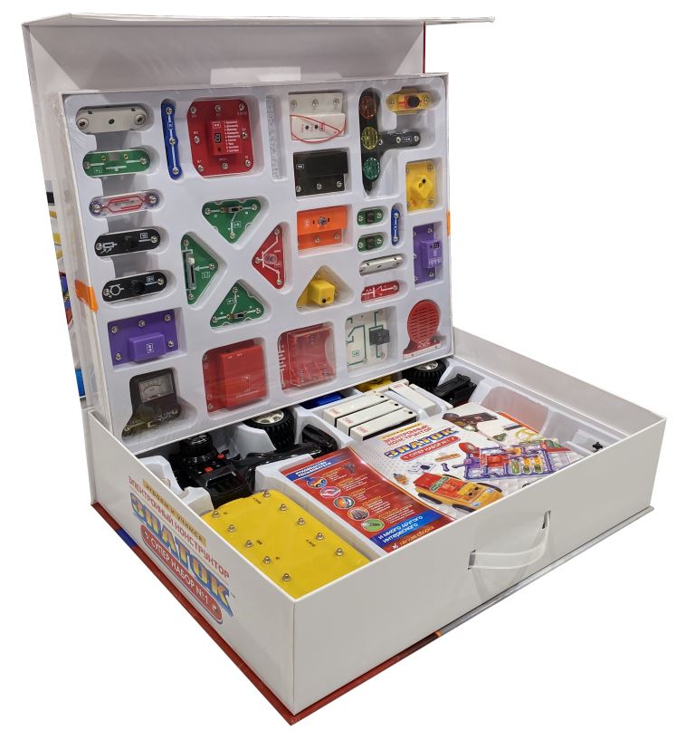 Но это не означает, что здесь собраны все известные схемы и электронные компоненты. Например, в наборах «Для школы и дома» или «Альтернативной энергии» найдется множество других интересных схем и деталей!