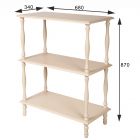 Этажерка-стеллаж П9 станет неотъемлемой частью квартиры или дома. Три вместительные полочки прямоугольной формы станут идеальным местом для размещения предметов декора или аксессуаров. Деревянные полки выполнены из высококачественного МДФ, а изящные ножки изготовлены из массива бука, что обеспечивает прочность и долгий срок службы. МАТЕРИАЛЫ: массив бука, МДФ УПАКОВКА: 68*49*8 см, 1 место ВЕС: 12,5 кг Цвет: белый, венге, слон. кость, средне-корич.,серый