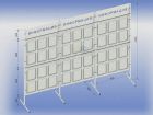 хромированная Joker труба 25 мм, 6 рабочих полей из ПВХ 4 мм. размером 0,8*0,9 м (высота, ширина) с фотопечатью 720 dpi и по 6 карманов формата А4 для информации. 3 верхних поля для названия 0,2*0,9 м. Дизайн стенда разрабатывается по Вашему техническому заданию