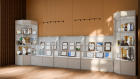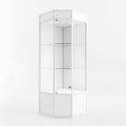 Стенд-витрина выполнен из алюминиевого профиля, полки из минерального стекла -6 мм, дверцы и боковые стенки из минерального стекла -4 мм., с бронированием пленкой 112 мкм или без плёнки.