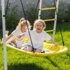 Качели предназначены для установки на дачные комплексы . Оригинальная форма изделия позволяет использовать качели в качестве гамака. Необычный игровой объект станет любимым местом игр и отдыха детей любого возраста. Сиденье изготовлено из качественного оксфорда. Материал обладает повышенной устойчивостью к погодным условиям и воздействию солнечных лучей. Оксфорд прост в уходе, легко чистится, не мнется, устойчив к загрязнениям и выцветанию. В целях сохранения товарного вида и увеличения срока службы изделия, качели необходимо снимать с комплекса в зимнее время и во время неблагоприятных погодных условий.
