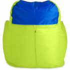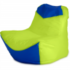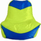 Размеры: 100x100x110 см.. Внешний чехол сшит из высококачественной ткани Оксфорд 210D PU с водоотталкивающей пропиткой. Внутренний чехол: Спанбонд 60D. Цвет: Лайм и синий. Наполнитель: гипоаллергенный сертифицированный мебельный полистирол, с размером фракции 2-5 мм (премиум). Удобная ручка для переноски. Съемный внешний чехол, пригодный для автоматической стирки. Двойные швы, армированные нити, люверсы для отвода воздуха. Безопасен для детей и животных. Мягкий бескаркасный мешок (бин бэг) в форме классического кресла