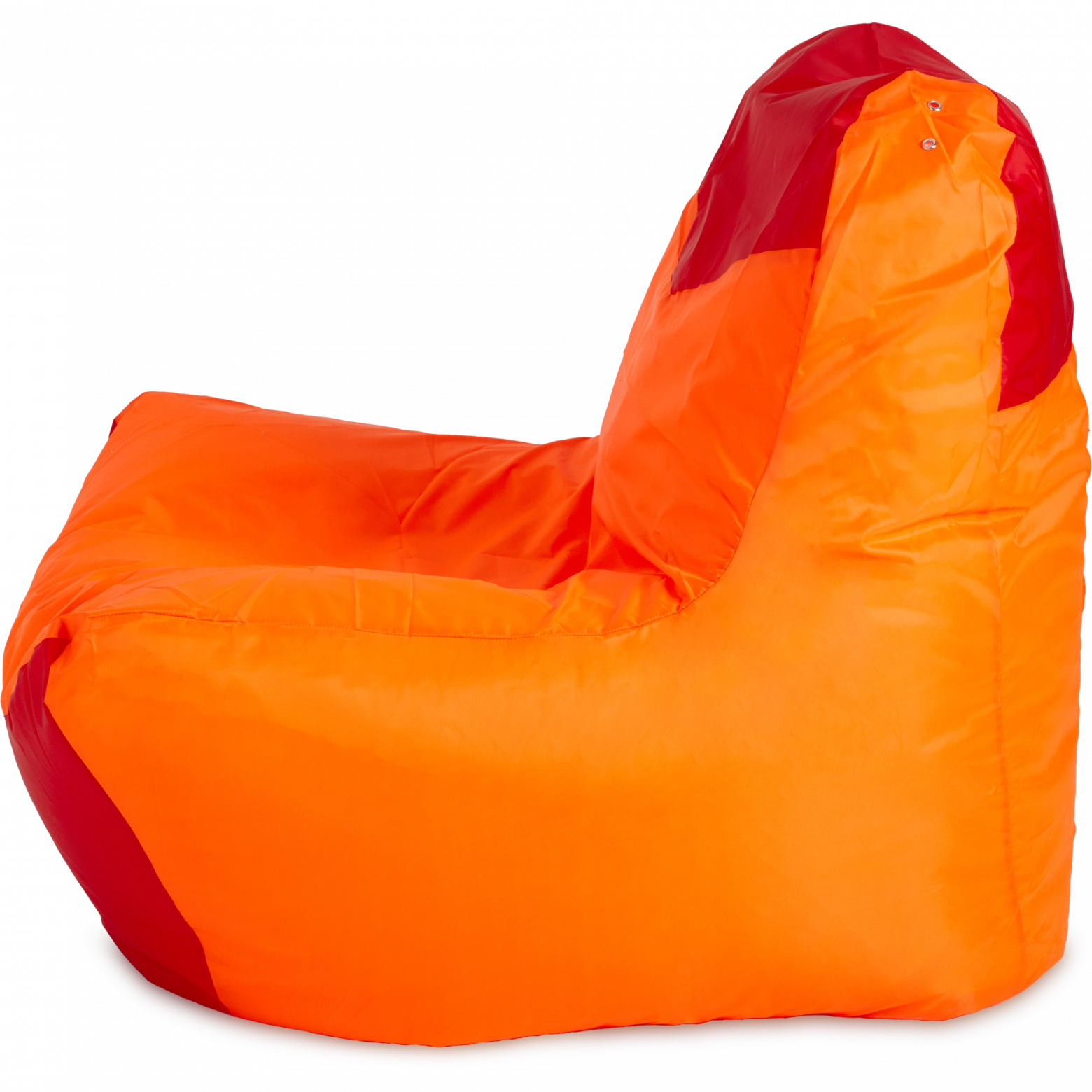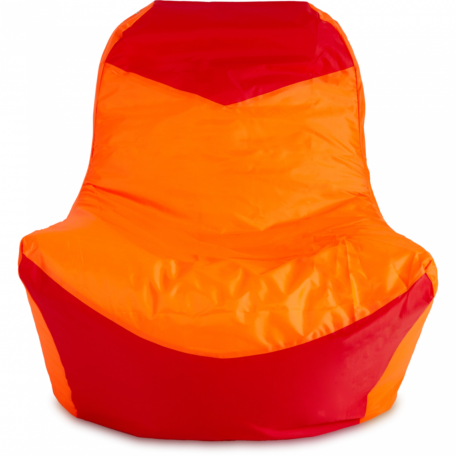 Размеры: 100x100x110 см.. Внешний чехол сшит из высококачественной ткани Оксфорд 210D PU с водоотталкивающей пропиткой. Внутренний чехол: Спанбонд 60D. Цвет: Оранжевый и красный. Наполнитель: гипоаллергенный сертифицированный мебельный полистирол, с размером фракции 2-5 мм (премиум). Удобная ручка для переноски. Съемный внешний чехол, пригодный для автоматической стирки. Двойные швы, армированные нити, люверсы для отвода воздуха. Безопасен для детей и животных. Мягкий бескаркасный мешок (бин бэг) в форме классического кресла