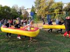 Участники противоборствующих команд ступают в лежащую лодочку, берутся за ручки, поднимают ее до пояса, после чего по сигналу стартует на дистанцию. Выигрывает та команда, которая первой пересечет финишную отметку.