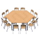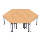 Комплект столов IT-K11 из восьми столов IT-9 – один из вариантов организации рабочего пространства для двенадцати человек в удобной форме «соты». Форма стола выглядит эстетично и стимулирует на активное включение каждого ученика в процесс усвоения материала. Роликовые колеса придают модулям мобильность, позволяя при желании создавать разные мебельные комбинации. Качественные материалы – то, что делает мебель серии практичной и долговечной: cтолешница выполнена из экологичной плиты MDF толщиной 16мм, каркас – из металлической трубы круглого сечения.