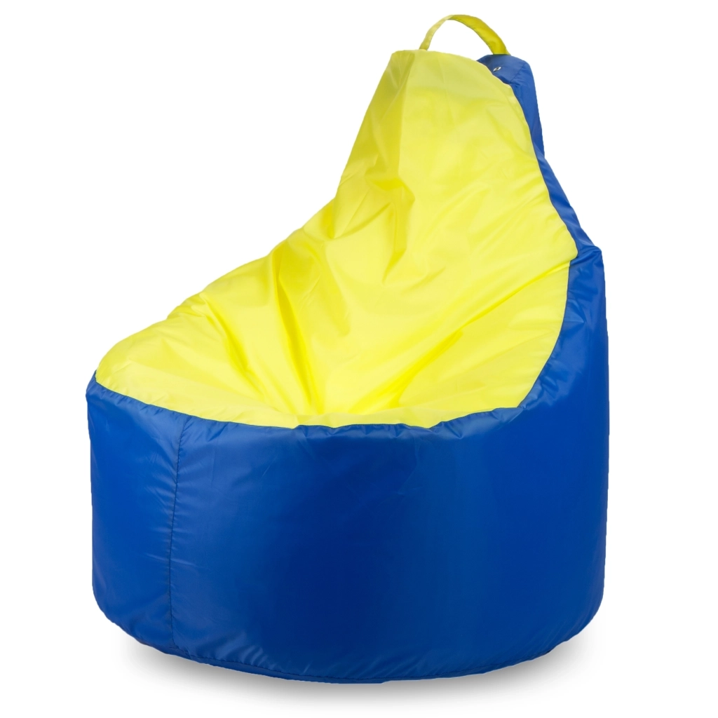Размеры: 145x90x90 см.. Внешний чехол сшит из высококачественной ткани Оксфорд 210D PU с водоотталкивающей пропиткой. Внутренний чехол: Спанбонд 60D. Цвет: Синий и желтый. Наполнитель: гипоаллергенный сертифицированный мебельный полистирол, с размером фракции 2-5 мм (премиум). Удобная ручка для переноски. Съемный внешний чехол, пригодный для автоматической стирки. Двойные швы, армированные нити, люверсы для отвода воздуха. Безопасен для детей и животных. Мягкий бескаркасный мешок (бин бэг) в форме комфортного кресла