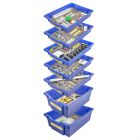 Комплект №7 укомплектован в пластиковую систему хранения, которая закрывается прозрачной пластиковой крышкой на защелках для обеспечения наблюдения за содержимым. Комплект оборудования в системе хранения располагается на ложементе.