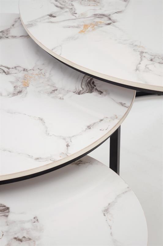 Вес, кг: 33 / Высота (см): 50/45/40 / Гарантия, мес.: 12 / Глубина (см): 80/60/45 / Количество коробок: 1 / Материал каркаса: металл / Материал столешницы: агломерат / Необходимость сборки: да / Раздвижной: нет / Размер упаковки 1: 0,84/0,855/0,12 / Страна производитель: Китай / Форма столешницы: круг / Цвет каркаса: черный / Цвет столешницы: белый / Ширина (см): 80/60/45