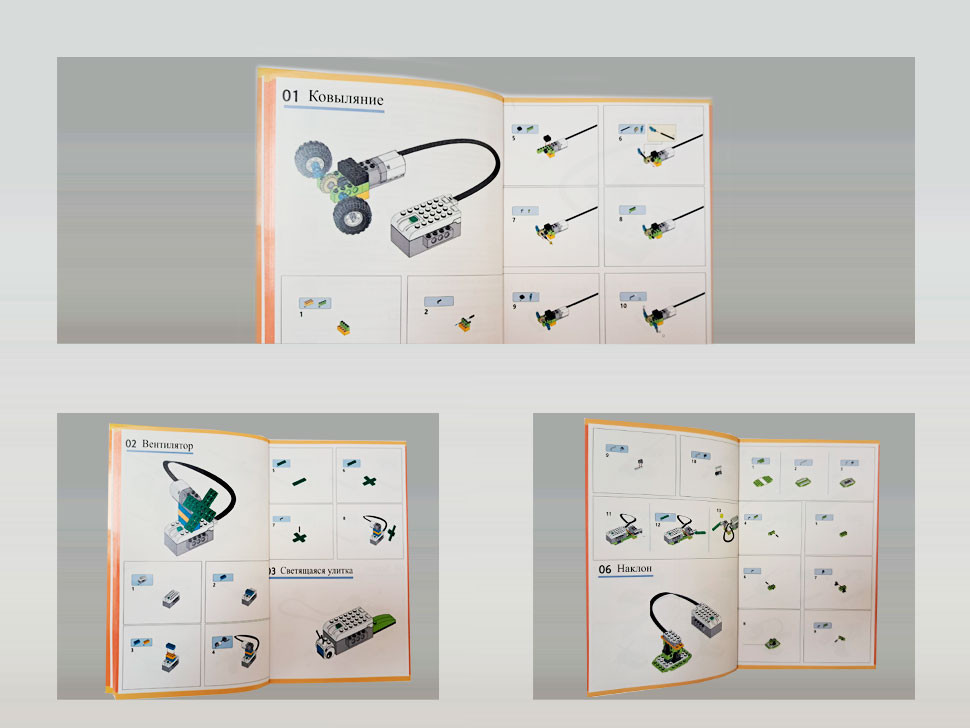 К набору прилагается Руководство по сборке 20 моделей, содержащей в себе 44 страницы подробной инструкции.