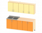 В комплект входит: 1) Шкаф навесной с сушкой для посуды, размер (ШхГхВ) 800х320х700 мм-1 шт; 2) Шкаф навесной 2 секции, 3 дверцы с полками для посуды, размер (ШхГхВ) 1170х320х700 мм – 1 шт; 3) Тумба с двойной накладной мойкой, размер (ШхГхВ) 800х600х850 мм. 4) Тумба вспомогательная 2 секции, 3 дверцы, размер (ШхВхГ): 1170х600х850 мм. Мойка и смеситель в комплекте. Столешница 26 мм, постформинг, с завалом. Материал: ЛДСП 16 мм, фасады МДФ. Кромка ПВХ. Цоколь пластик.