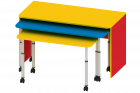В комплекте: тумба-стол ШхГхВ 1150х560х640; стол прямоугольный на регул. ножках выкатной ШхГхВ1100х500х580; стол прямоугольный на регул. опорахвыкатной ШхГхВ 930х500х520 мм. Материал: ЛДСП толщиной 16 мм, кромка ПВХ. Опоры рег. 400-580 мм