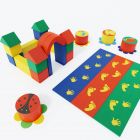 В набор входят следующие элементы: мягкий комплекс «Замок» (состоит из 19 элементов разных форм и цветов), коврик «Путаница», пуфик «Корова», пуфик «Макака», пуфик «Попугай», пуфик «Божья коровка».