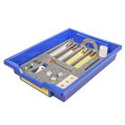 — 7 тематических наборов (комплектов), охватывающих весь курс физики до 9 класса включительноКаждый тематический набор укомплектован в отдельную пластиковую систему хранения с ложементом и пластиковой прозрачной крышкой на защелках для обеспечения наблюдения за содержимым.