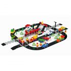 • В комплект входят: кубики различных цветов и размеров, сборные машинки, фигурки человечков и набор инструментов для них, элементы для сборки дорожного полотна, набор наклеек "Дорожные знаки", элементы декора (дорожные знаки, деревья, светофоры, заборы, окна, двери, крыши).