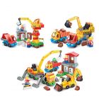 • В комплект входят: кубики различных цветов и размеров, сборная строительная техника, сборные машинки, фигурки человечков и набор инструментов для них, набор наклеек "Дорожные знаки", элементы декора (дорожные знаки, деревья, светофоры, забор, окна, двери, крыши).