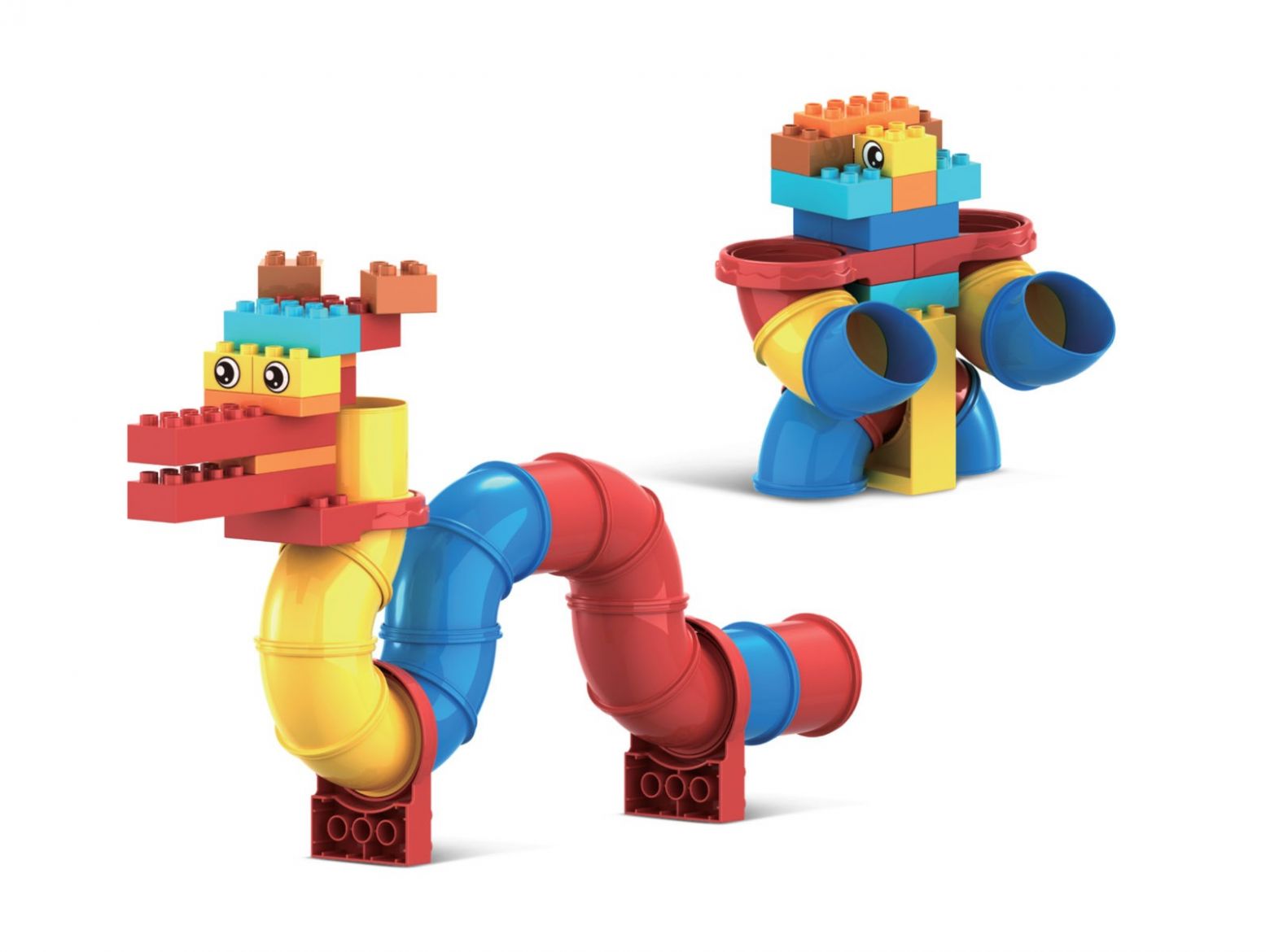 DIBO «Творческое вдохновение» — это 164 детали с уникальными деталями труб! Ваш ребенок сможет собрать настоящую детскую площадку с кораблем, драконом или удавом, робота со спусками для шаров вместо рук. Создавайте невероятные конструкции с переплетениями сети горок по которым так весело запускать шарики! Яркие кубики и закрытые каналы труб вдохновляют на бесконечное свободное конструирование.
