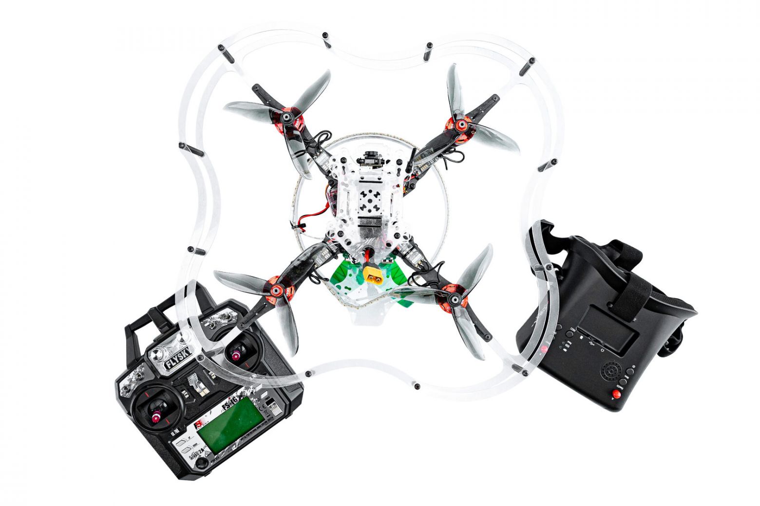 Модель Клевер.про Конструктор программируемого квадрокоптера «Клевер Про» представляет собой комплексное решение для сборки, пайки, настройки и эксплуатации БАС. Комплект включает в себя все необходимые для этого компоненты: полный набор комплектующих для сборки квадрокоптера Клевер, специализированный инструментарий, включая пульт, FPV-очки, паяльное оборудование, лицензионное программное обеспечение, а также подробные методические материалы по сборке и запуску.