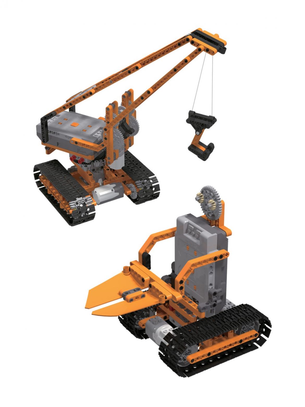 Это возможность программирования без компьютера для детей от 6-ти лет! Ваш ребенок познакомится с принципами работы механизмов строительной техники и самостоятельно сможет собрать и изучить: гусеничную платформу, буровую машину, ручной зажим, кран с ручным приводом, конвейерную ленту, понижающий редуктор, модель вращения земли вокруг солнца, трактор с дистанционным управлением, погрузчик, экскаватор и многое другое!