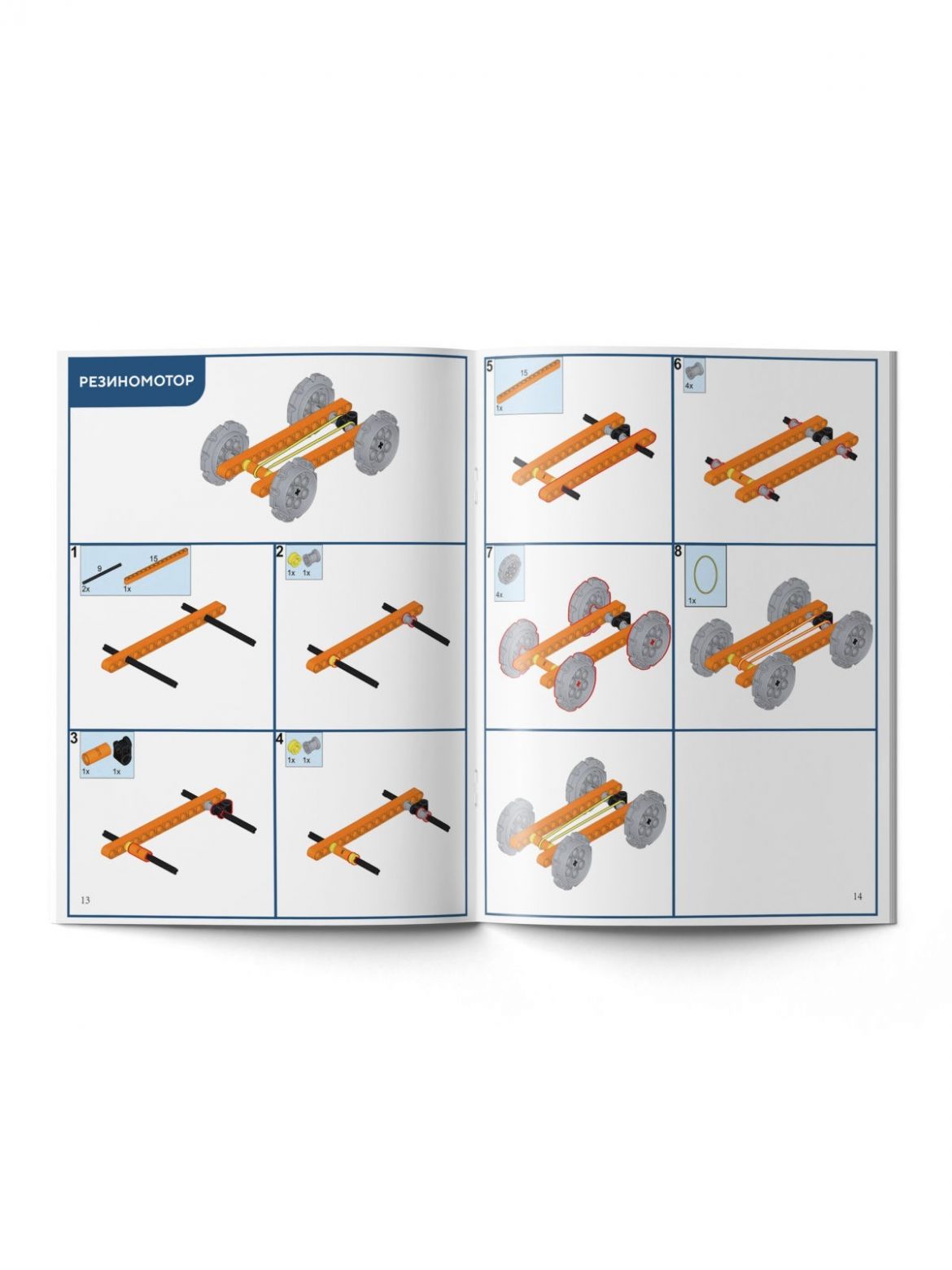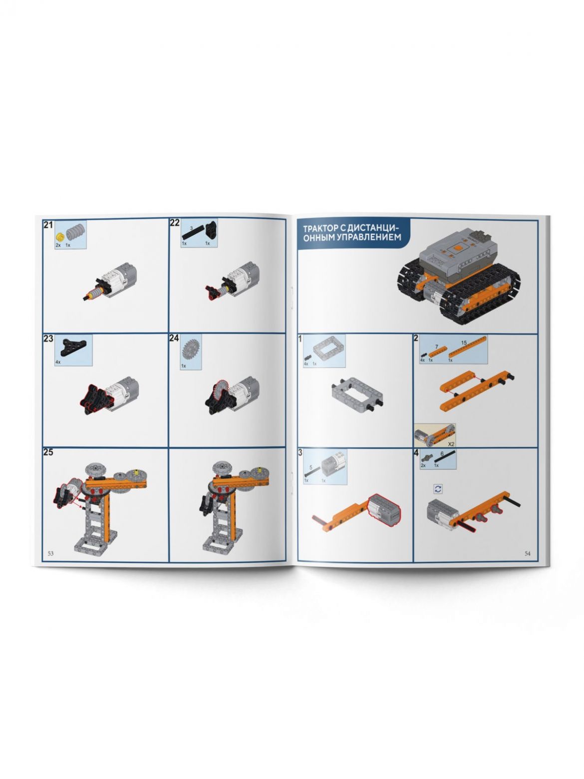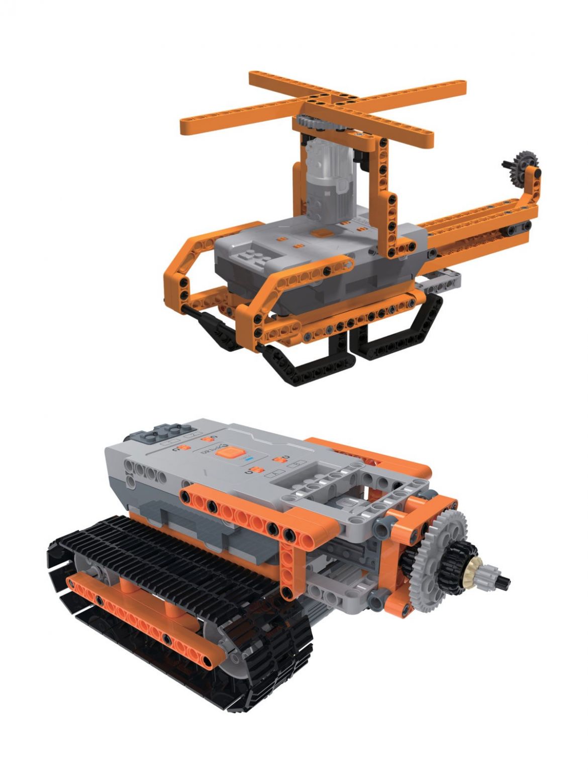В набор входят: пошаговая инструкция по сборке моделей, электромоторы, провода, приемник, четырехканальный пульт дистанционного управления с функцией Bluetooth. Приемник и пульт подключаются по беспроводной связи, обмениваются данными и могут работать в двух режимах (режим программирования и режим дистанционного управления).