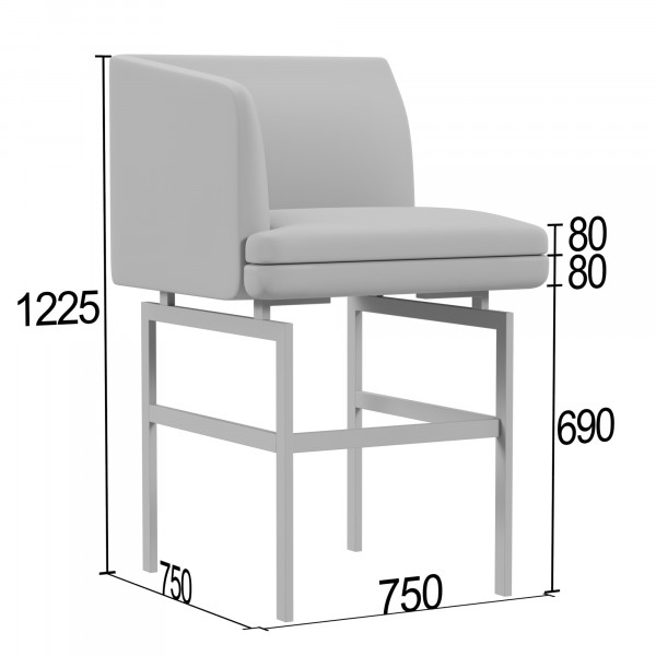 Каркас:Каркас кресла выполнен из высококачественных материалов: калиброванный брус из массива хвойных пород древесины (влажность 8-12%), фанера толщиной 10-15 мм, ДСП 16 мм, влагостойкий ДВП 3,2 мм и прессованный картон 1,75 мм. Соединения выполнены с использованием каркасных пневмопистолетов и специальных скоб с клеем, что обеспечивает прочность и долговечность конструкции.Чехол:Чехол изготавливается по точным лекалам из высокопрочных материалов. Пошив выполняется на современных колонковых швейных машинках с тройным продвижением, что гарантирует идеально ровные швы. Компенсирующая лапка со встроенным направителем обеспечивает равномерное натяжение ниток.Наполнитель:Сиденье: пенополиуретан толщиной 20-30 мм, плотность 25 кг/м?, жесткость 3,6 Кпа. Обивка дна выполнена из технической ткани спанбонд 100 г/м?.Спинка: пенополиуретан толщиной 10-30 мм.Подлокотники: пенополиуретан толщиной 10-20 мм.Опоры:Металлические трубы черного цвета, высота 290 мм и 690 мм (барная версия). Регулировки высоты нет, крепление выполнено с помощью накладной площадки.Упаковка:Кресло упаковано в спанбонд, пленекс, двухслойный картон и полиэтиленовую пленку. Используется одноразовый фирменный скотч для предотвращения несанкционированной переупаковки.Максимальная нагрузка:До 120 кг на одно посадочное место.ЭРГОНОМИКА ПОСАДКИ-КОМФОРТ ; К СТОЛУ h-750мм