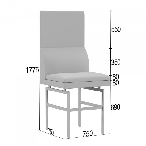Каркас:Каркас кресла выполнен из высококачественных материалов: калиброванный брус из массива хвойных пород древесины (влажность 8-12%), фанера толщиной 10-15 мм, ДСП 16 мм, влагостойкий ДВП 3,2 мм и прессованный картон 1,75 мм. Соединения выполнены с использованием каркасных пневмопистолетов и специальных скоб с клеем, что обеспечивает прочность и долговечность конструкции.Чехол:Чехол изготавливается по точным лекалам из высокопрочных материалов. Пошив выполняется на современных колонковых швейных машинках с тройным продвижением, что гарантирует идеально ровные швы. Компенсирующая лапка со встроенным направителем обеспечивает равномерное натяжение ниток.Наполнитель:Сиденье: пенополиуретан толщиной 20-30 мм, плотность 25 кг/м?, жесткость 3,6 Кпа. Обивка дна выполнена из технической ткани спанбонд 100 г/м?.Спинка: пенополиуретан толщиной 10-30 мм.Подлокотники: пенополиуретан толщиной 10-20 мм.Опоры:Металлические трубы черного цвета, высота 290 мм и 690 мм (барная версия). Регулировки высоты нет, крепление выполнено с помощью накладной площадки.Упаковка:Кресло упаковано в спанбонд, пленекс, двухслойный картон и полиэтиленовую пленку. Используется одноразовый фирменный скотч для предотвращения несанкционированной переупаковки.Максимальная нагрузка:До 120 кг на одно посадочное место.ЭРГОНОМИКА ПОСАДКИ-КОМФОРТ ; К СТОЛУ h-750мм
