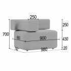 Каркас: изготавливается из калиброванного бруса 30х40 мм, 30х60 мм массива хвойных пород древесины 8-12% влажности, березовой фанеры 15 мм, ДСП 16 мм, ДВП 3,2 мм влагостойкого, картона прессованного 1,75 мм при помощи каркасных пневмопистолетов (созданных для интенсивных производств с качественно подготовленным воздухом), а так же каркасной скобой 50 мм с клеем (с высокими крепёжными свойствами).Это позволяет надежно скрепить дерево, фанеру, ДВП, ДСП, ЛДСП и обеспечивает практически неразборность соединений и отсутствие рекламаций.Чехол: изготавливается по проработанным, выверенным по дизайну лекалам. Во избежание отклонений или брака чехлов лекала создаются из специальных высокопрочных материалов. Пошив чехлов осуществляется колонковыми одно- и двух игольными швейными машинками с тройным продвижением с равномерной амплитудой подачи материалов. Так обеспечивается получение идеально ровной по всей длине швастрочки. Благодаря компенсирующей лапке со встроенным направителем середины шва достигается стабильная натяжка ниток и равномерное расстояние между строчками. С нижней части чехлов, используется киперная лента для уплотнения и дополнительной поддержки шва. Предохранения его от излишнего растяжения, что в свою очередь не позволяет в процессе эксплуатации мебели, рваться нитками обеспечивает высокую надежность эксплуатации мебельных чехлов.Сиденье: наполнитель — пенополиуритан 20 мм, 30 мм, 50 мм ST2536 плотностью 25 кг/м?, жесткость 3,6 кПа, техническая ткань — спанбонд 100 г/м? (обивка дна).Спинка: наполнитель — пенополиуритан 20 мм, 30 мм ST2536 плотностью 25 кг/м?, жесткость 3,6 кПа.Подлокотники: наполнитель — пенополиуритан 20 мм, 30 мм ST2536 плотностью 25 кг/м?, жесткость 3,6 кПа.Опоры: цвет — черный, материал — пластиковый подпятник на металлической основе, высота — 35 мм, опора со штырем, монтаж — не требуется.Упаковка: спанбонд 17, пленекс, двухслойный картон, пленка полиэтиленовая. Одноразовый фирменный скотч, исключающий несанкционированную переупаковку.Допустимая нагрузка — до 120 кг на одно посадочное место.