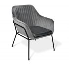 Мягкое уютное кресло в современном стиле, обитое серым микровелюром, на каркасе из черного металла. Благодаря своему универсальному дизайну и лаконичному сочетанию цветов такое кресло гармонично впишется практически в любой современный интерьер кафе, бара, ресторана, офиса, общественных учреждений, залов ожидания или дома.