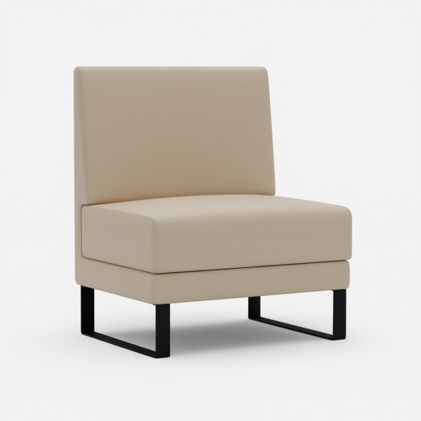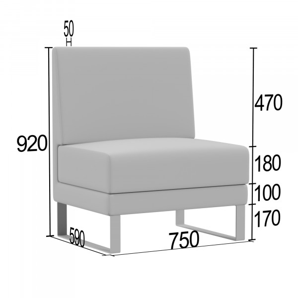 КаркасКаркас выполнен из калиброванного бруса 30х40 мм из массива хвойных пород древесины с влажностью 8-12%. Для усиления конструкции используются фанера толщиной 10 мм и 15 мм, ДСП 16 мм, влагостойкий ДВП 3,2 мм и прессованный картон 1,75 мм. Соединения осуществляются с помощью каркасных пневмопистолетов и каркасной скобы 50 мм с клеем, что обеспечивает высокую прочность и надежность.ЧехолЧехол изготавливается по точным лекалам из высокопрочных материалов. Пошив выполняется на колонковых одно- и двухигольных швейных машинках с тройным продвижением, что гарантирует ровность швов. Компенсирующая лапка со встроенным направителем середины шва обеспечивает стабильную натяжку ниток и равномерное расстояние между строчками.СиденьеСиденье оснащено наполнителем из пенополиуретана толщиной 10 мм, 20 мм, 30 мм и 80 мм (подушка). Используется пенополиуретан ST2536 плотностью 25 кг/м? и жесткостью 3,6 кПа. Обивка дна выполнена из технической ткани спанбонд плотностью 100 г/м?.СпинкаСпинка имеет наполнитель из пенополиуретана толщиной 10 мм и 30 мм, также плотностью 25 кг/м? и жесткостью 3,6 кПа.ОпорыОпоры черного цвета выполнены из металлической полосы. Высота опор составляет 170 мм. Регулировка высоты отсутствует. Тип крепления — накладная площадка, монтаж не требуется.УпаковкаУпаковка включает спанбонд 17, пленекс, двухслойный картон и полиэтиленовую пленку. Используется одноразовый фирменный скотч для предотвращения несанкционированной переупаковки.Допустимая нагрузкаМаксимальная нагрузка на одно посадочное место составляет до 120 кг.