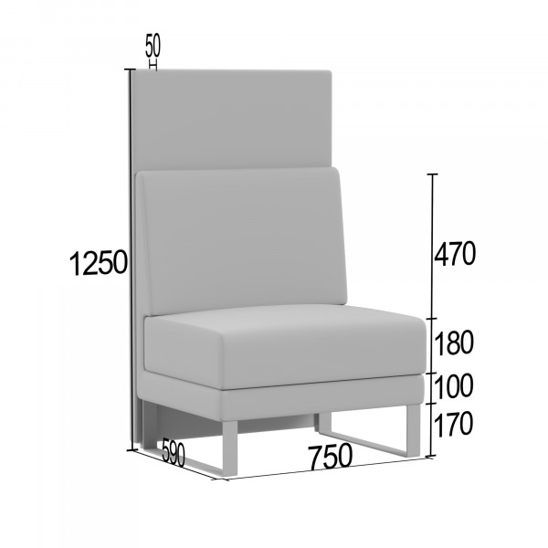КаркасКаркас выполнен из калиброванного бруса 30х40 мм из массива хвойных пород древесины с влажностью 8-12%. Для усиления конструкции используются фанера толщиной 10 мм и 15 мм, ДСП 16 мм, влагостойкий ДВП 3,2 мм и прессованный картон 1,75 мм. Соединения осуществляются с помощью каркасных пневмопистолетов и каркасной скобы 50 мм с клеем, что обеспечивает высокую прочность и надежность.ЧехолЧехол изготавливается по точным лекалам из высокопрочных материалов. Пошив выполняется на колонковых одно- и двухигольных швейных машинках с тройным продвижением, что гарантирует ровность швов. Компенсирующая лапка со встроенным направителем середины шва обеспечивает стабильную натяжку ниток и равномерное расстояние между строчками.СиденьеСиденье оснащено наполнителем из пенополиуретана толщиной 10 мм, 20 мм, 30 мм и 80 мм (подушка). Используется пенополиуретан ST2536 плотностью 25 кг/м? и жесткостью 3,6 кПа. Обивка дна выполнена из технической ткани спанбонд плотностью 100 г/м?.СпинкаСпинка имеет наполнитель из пенополиуретана толщиной 10 мм и 30 мм, также плотностью 25 кг/м? и жесткостью 3,6 кПа.ОпорыОпоры черного цвета выполнены из металлической полосы. Высота опор составляет 170 мм. Регулировка высоты отсутствует. Тип крепления — накладная площадка, монтаж не требуется.УпаковкаУпаковка включает спанбонд 17, пленекс, двухслойный картон и полиэтиленовую пленку. Используется одноразовый фирменный скотч для предотвращения несанкционированной переупаковки.Допустимая нагрузкаМаксимальная нагрузка на одно посадочное место составляет до 120 кг.