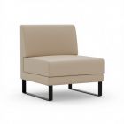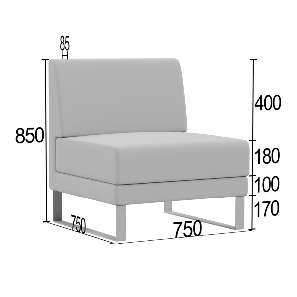 КаркасКаркас выполнен из калиброванного бруса 30х40 мм из массива хвойных пород древесины с влажностью 8-12%. Для усиления конструкции используются фанера толщиной 10 мм и 15 мм, ДСП 16 мм, влагостойкий ДВП 3,2 мм и прессованный картон 1,75 мм. Соединения осуществляются с помощью каркасных пневмопистолетов и каркасной скобы 50 мм с клеем, что обеспечивает высокую прочность и надежность.ЧехолЧехол изготавливается по точным лекалам из высокопрочных материалов. Пошив выполняется на колонковых одно- и двухигольных швейных машинках с тройным продвижением, что гарантирует ровность швов. Компенсирующая лапка со встроенным направителем середины шва обеспечивает стабильную натяжку ниток и равномерное расстояние между строчками.СиденьеСиденье оснащено пружинными блоками и наполнителем из пенополиуретана толщиной 10 мм, 20 мм, 30 мм и 80 мм (подушка). Используется пенополиуретан ST2536 плотностью 25 кг/м? и жесткостью 3,6 кПа. Обивка дна выполнена из технической ткани спанбонд плотностью 100 г/м?.СпинкаСпинка имеет наполнитель из пенополиуретана толщиной 10 мм и 30 мм, также плотностью 25 кг/м? и жесткостью 3,6 кПа.ОпорыОпоры черного цвета выполнены из металлической полосы. Высота опор составляет 170 мм. Регулировка высоты отсутствует. Тип крепления — накладная площадка, монтаж не требуется.УпаковкаУпаковка включает спанбонд 17, пленекс, двухслойный картон и полиэтиленовую пленку. Используется одноразовый фирменный скотч для предотвращения несанкционированной переупаковки.Допустимая нагрузкаМаксимальная нагрузка на одно посадочное место составляет до 120 кг.