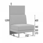 КаркасКаркас выполнен из калиброванного бруса 30х40 мм из массива хвойных пород древесины с влажностью 8-12%. Для усиления конструкции используются фанера толщиной 10 мм и 15 мм, ДСП 16 мм, влагостойкий ДВП 3,2 мм и прессованный картон 1,75 мм. Соединения осуществляются с помощью каркасных пневмопистолетов и каркасной скобы 50 мм с клеем, что обеспечивает высокую прочность и надежность.ЧехолЧехол изготавливается по точным лекалам из высокопрочных материалов. Пошив выполняется на колонковых одно- и двухигольных швейных машинках с тройным продвижением, что гарантирует ровность швов. Компенсирующая лапка со встроенным направителем середины шва обеспечивает стабильную натяжку ниток и равномерное расстояние между строчками.СиденьеСиденье оснащено пружинными блоками и наполнителем из пенополиуретана толщиной 10 мм, 20 мм, 30 мм и 80 мм (подушка). Используется пенополиуретан ST2536 плотностью 25 кг/м? и жесткостью 3,6 кПа. Обивка дна выполнена из технической ткани спанбонд плотностью 100 г/м?.СпинкаСпинка имеет наполнитель из пенополиуретана толщиной 10 мм и 30 мм, также плотностью 25 кг/м? и жесткостью 3,6 кПа.ОпорыОпоры черного цвета выполнены из металлической полосы. Высота опор составляет 170 мм. Регулировка высоты отсутствует. Тип крепления — накладная площадка, монтаж не требуется.УпаковкаУпаковка включает спанбонд 17, пленекс, двухслойный картон и полиэтиленовую пленку. Используется одноразовый фирменный скотч для предотвращения несанкционированной переупаковки.Допустимая нагрузкаМаксимальная нагрузка на одно посадочное место составляет до 120 кг.