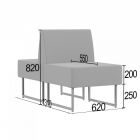 Каркас: калиброванный брус 30х40 мм массив хвойных пород древесины 8-12% влажности, ДСП 16 мм, ДВП 3,2 мм влагостойкий, картон прессованный 1,75 мм; при помощи каркасных пневмописталетов (созданных для интенсивных производств с качественно подготовленным воздухом), а так же каркасной скобой 50мм с клеем (с высокими крепёжными свойствами). Это позволяет надежно скрепить дерево, фанеру, ДВП, ДСП, ЛДСП и обеспечивает практически неразборность соединений и отсутствие рекламаций. Чехол: Чехол изготавливается по проработанным, выверенным по дизайну лекалам. Во избежание отклонений или брака чехлов лекала создаются из специальных высокопрочных материалов. Пошив чехлов осуществляется колонковыми одно и двух игольными швейными машинками с тройным продвижением с равномерной амплитудой подачи материалов. Так обеспечивается получение идеально ровной по всей длине шва строчки. Благодаря компенсирующей лапке со встроенным направителем середины шва, достигается стабильная натяжка ниток и равномерное расстояние между строчками. Сиденье: наполнитель — пенополиуритан 20 мм, 30 мм, 50 мм ST2536 плотностью 25 кг/м?, жесткость 3,6 кПа, техническая ткань — спанбонд 100 г/м? (обивка дна). Спинка: наполнитель — пенополиуритан 10 мм и 30 мм ST2536 плотностью 25 кг/м?, жесткость 3,6 Кпа. Подлокотники: — отсутствуют. Опоры: цвет — черный или серый, материал — металлическая труба d?25 мм, высота — 250 мм, тип крепления — накладная площадка, монтаж — не требуется. Упаковка — спанбонд 17, пленекс, двухслойный картон, пленка полиэтиленовая. Одноразовый фирменный скотч, исключающий несанкционированную переупаковку. Допустимая нагрузка — до 120 кг на одно посадочное место.