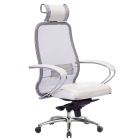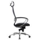 Сверхпрочный стальной каркас спинки, покрытый зеркальным хромом и сиденье мягкое объемное из материала NewLeather с хромированным молдингом на столярном каркасе;