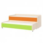 Кровать изготовлена из ЛДСП 16 мм, все детали обработаны кромкой ПВХ 2 мм. Ложе МДФ 8мм. Корпус дуб молочный Кровать представляет собой систему выдвижных элементов. Единая конструкция представляет собой совокупность двух кроватей, собирающихся по типу «матрешки». Лежак представляет собой каркас соединенный планками из ЛДСП шириной не менее 50 мм. Задние бортики кроватей выступают, что при выдвижении позволяет кроватям цепляться друг за друга. Нижние части опор (боковин) кроватей оборудованы колесными опорами. Все углы закруглены. Цвет: по согласованию с заказчиком.