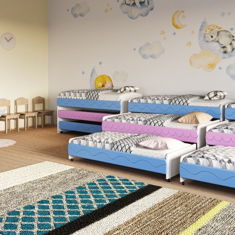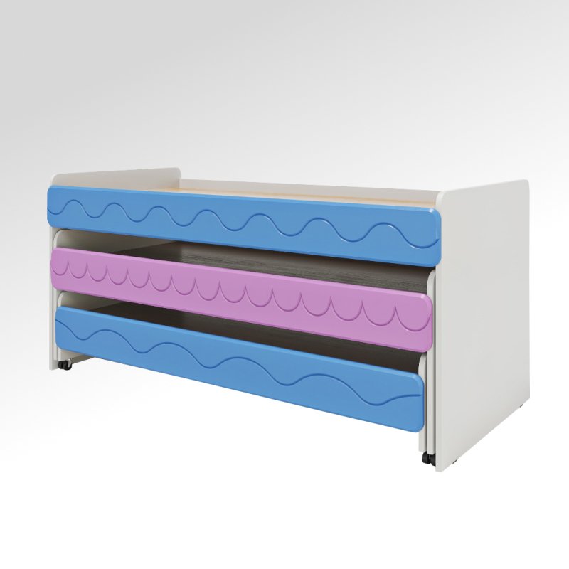 Выкатная кровать Город – удобный вариант для небольших спален в детских садах Кровать имеет 3 яруса и выкатной механизм, который позволяет убирать и доставать спальные места, когда это необходимо Материал изготовления: ЛДСП 16 мм