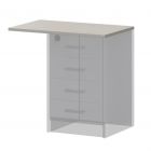 Тумбы Толщина ДСП каркасов, мм: 18 Кромка на каркасах, мм: 2, АВС Задняя стенка (мобильные тумбы): ЛДСП, 18 мм Задняя стенка (приставные тумбы): ЛДСП, 18 мм Стенки ящиков (кроме АТ-10): ЛДСП , 16мм цвет лайм Дно ящика: ЛХДФ Замок: На верхний ящик, на всех тумбах, на тумбах-купе-центральный Толщина ДСП лицевых панелей, мм: 18 Кромка на лицевых панелях ящиков, мм: 0,4 Толщина топа, мм: 22 Кромка топа, мм: 2, АВС Диаметр колес, мм: 40