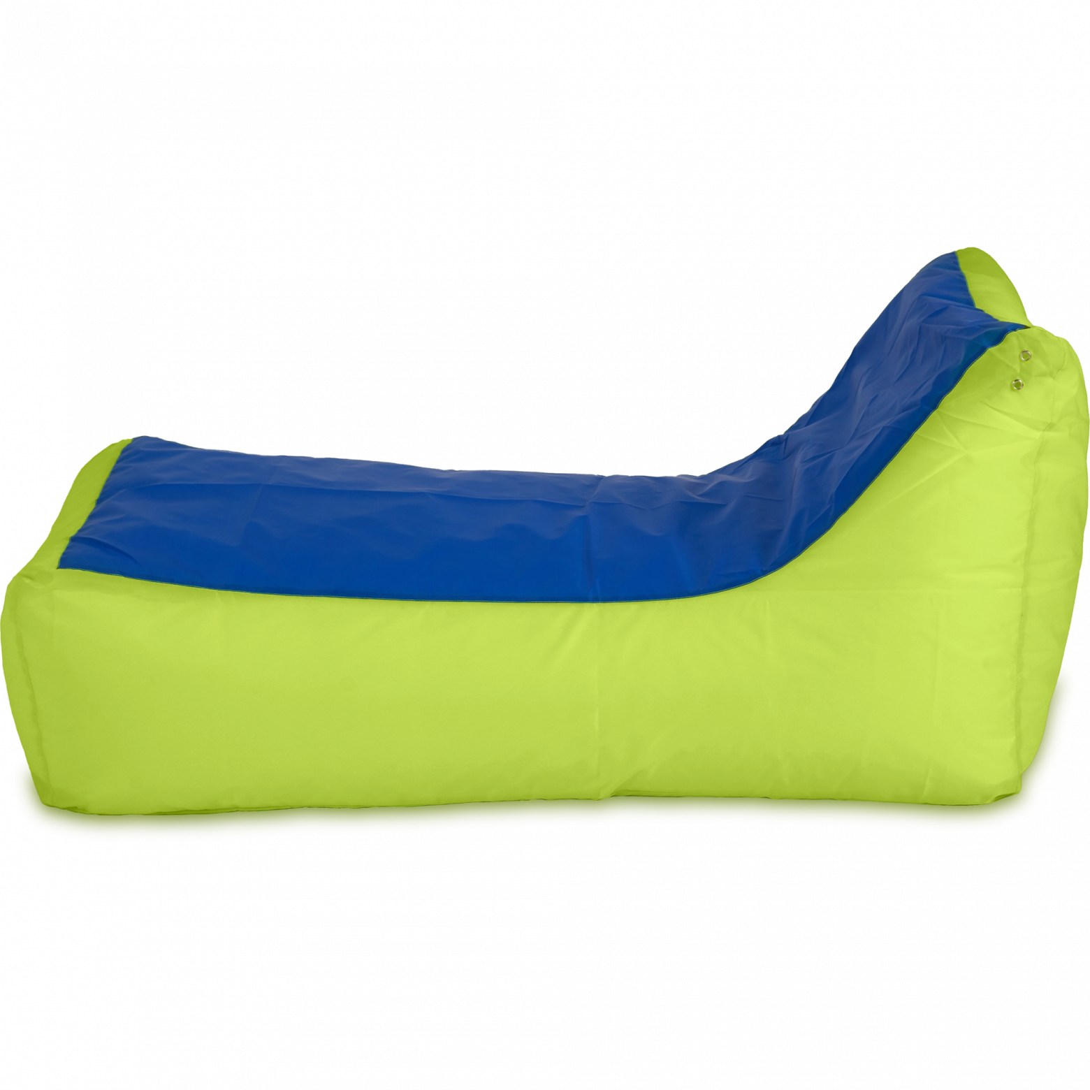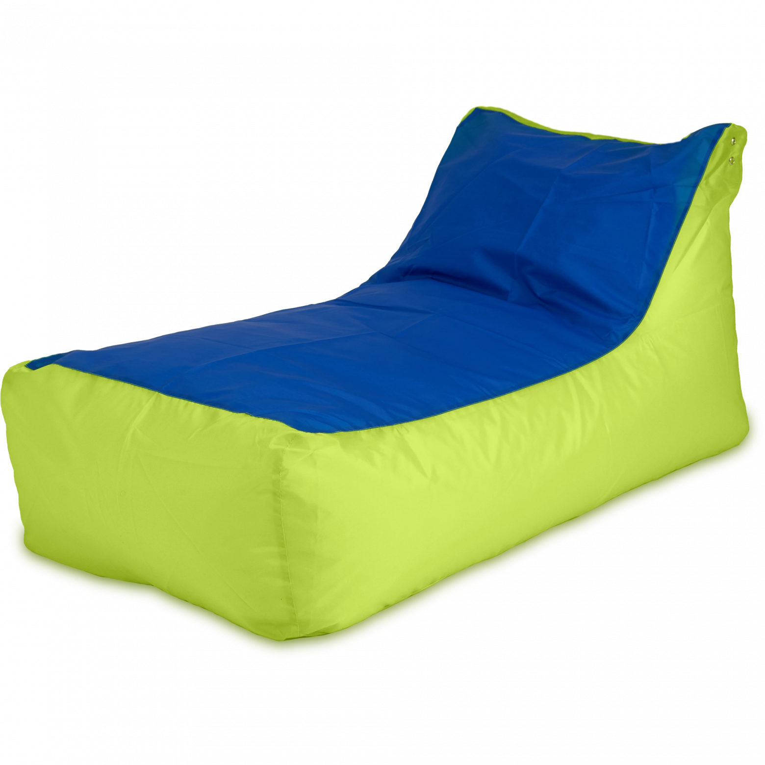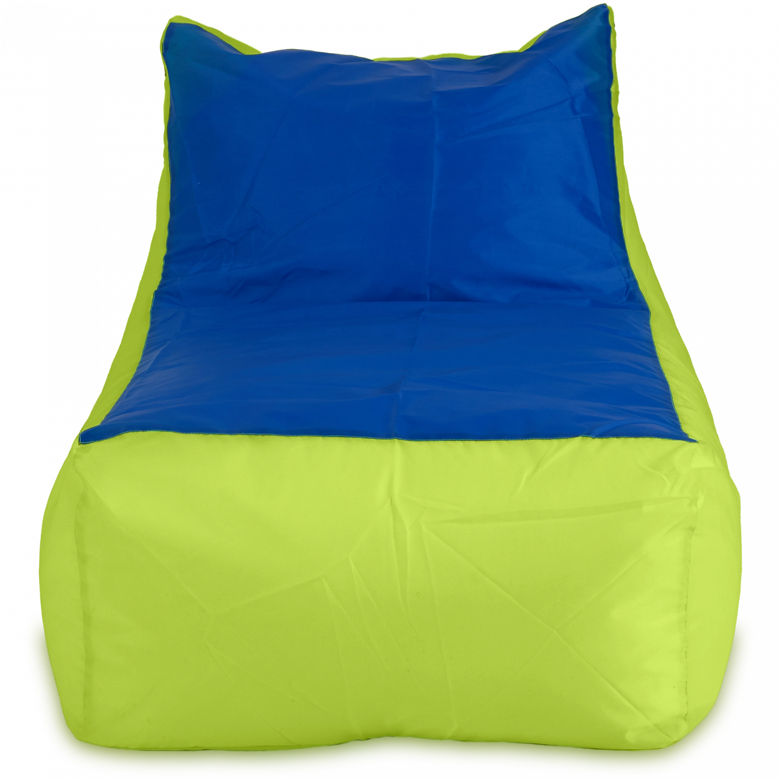 Размеры: 70x130x70 см.. Внешний чехол сшит из высококачественной ткани Оксфорд 210D PU с водоотталкивающей пропиткой. Внутренний чехол: Спанбонд 60D. Цвет: Лайм и синий. Наполнитель: гипоаллергенный сертифицированный мебельный полистирол, с размером фракции 2-5 мм (премиум). Съемный внешний чехол, пригодный для автоматической стирки. Двойные швы, армированные нити, люверсы для отвода воздуха. Безопасен для детей и животных. Мягкий бескаркасный мешок (бин бэг) в форме кушетки для эксплуатации в качестве кресла или лежака