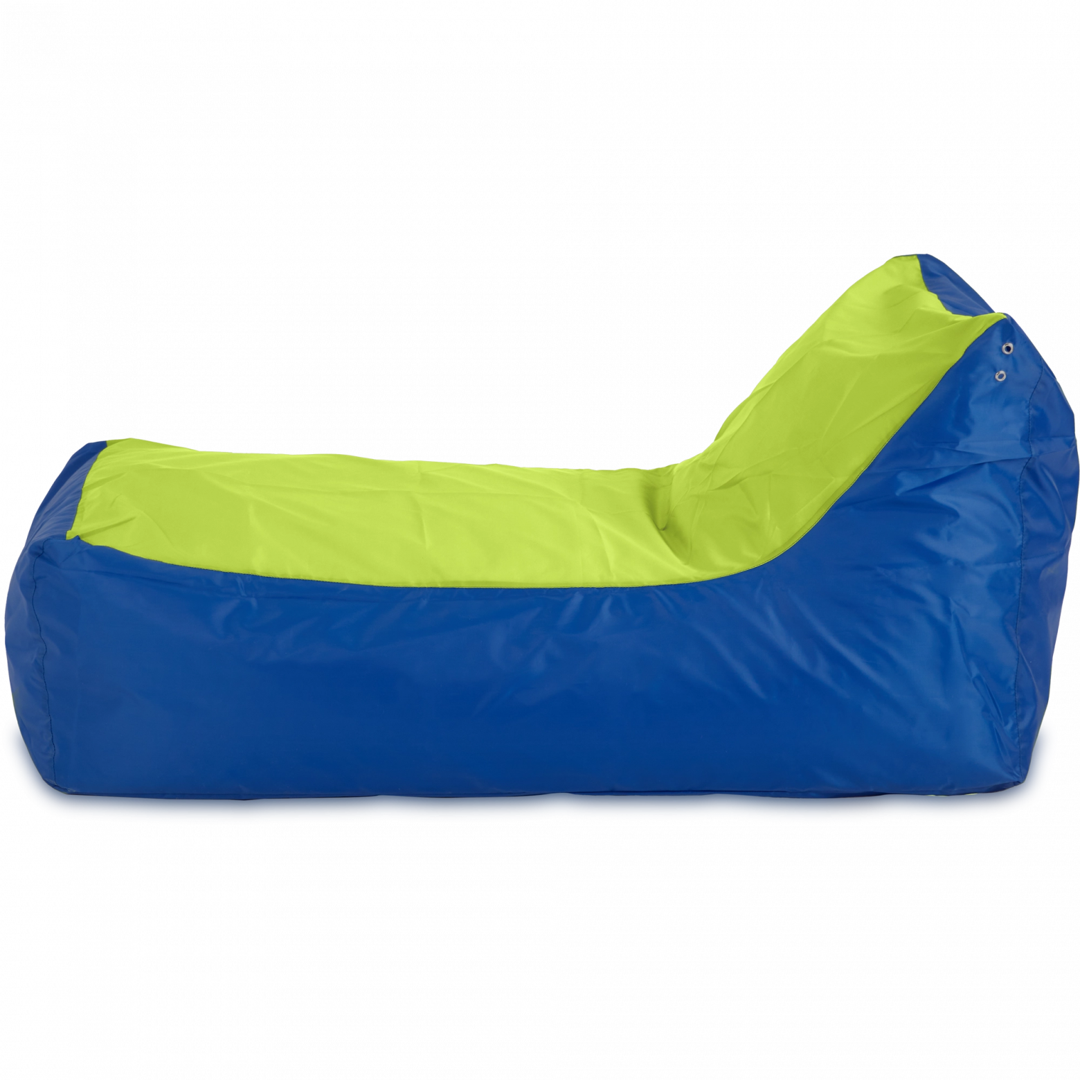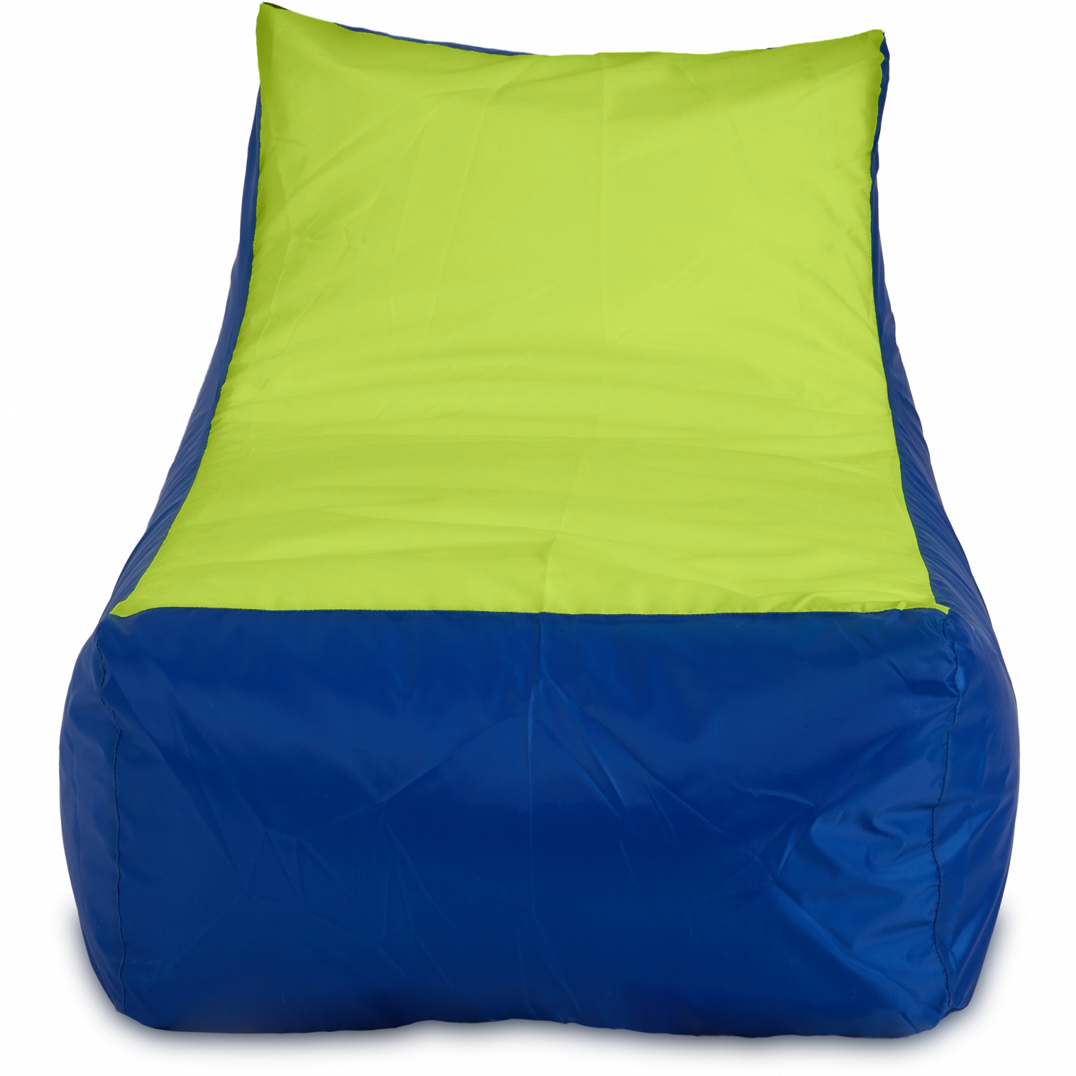 Размеры: 70x130x70 см.. Внешний чехол сшит из высококачественной ткани Оксфорд 210D PU с водоотталкивающей пропиткой. Внутренний чехол: Спанбонд 60D. Цвет: Синий и лайм. Наполнитель: гипоаллергенный сертифицированный мебельный полистирол, с размером фракции 2-5 мм (премиум). Съемный внешний чехол, пригодный для автоматической стирки. Двойные швы, армированные нити, люверсы для отвода воздуха. Безопасен для детей и животных. Мягкий бескаркасный мешок (бин бэг) в форме кушетки для эксплуатации в качестве кресла или лежака