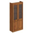 Каркас из ЛДСП т.16 мм, видимые торцы облицованы кромкой ПВХ 0,4 мм. Верхний, нижний цоколь и фасады из МДФ т.16 мм, декорированы методом глубокого фрезерования, финишная отделка лаком. Стеклянные двери рамочные. Рамка из МДФ т.16 мм со вставкой из тонированного стекла 4 мм, цвет - бронза. Полки съемные, ручки-кнопки, цвет - состаренная бронза, петли с доводчиками.
