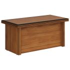 Столешница из МДФ т.16 мм, по периметру профиль из МДФ т.16 мм и шириной 60 мм, общая толщина столешницы 76 мм, декорирована методом глубокого фрезерования, финишная отделка лаком. Опоры из МДФ и ЛДСП общей толщиной 75мм, МДФ декорированы методом глубокого фрезерования, финишная отделка лаком. Фронтальная панель из ЛДСП т.16 мм., видимые торцы облицованы кромкой ПВХ 0,4 мм.